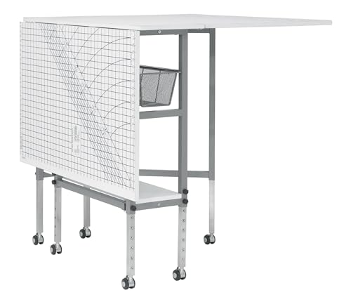 017342133860: Sew Ready Foldable Hobby and Cutting Grid Table – 58.75″ W x 36.5″ D White Arts and Crafts Table with Grid Top and Silver Storage Drawers: 13386