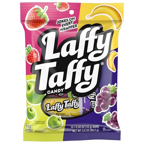- Product Name: Laffy Taffy Assorted, Mini Bars, Stand Up Bag, Chewy Candy in a Variety of Fruity Flavors, 3.5 oz