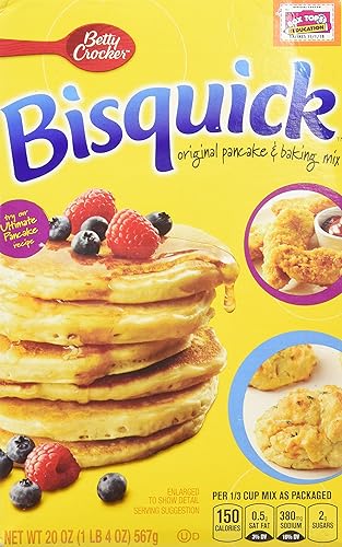 • Product Name: Betty Crocker Bisquick Pancake and Baking Mix, Original, Makes About 30 Pancakes, 20 oz: 450107934098