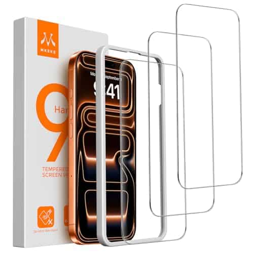 • Product Name: Mkeke Screen Protector Compatible with iPhone 17 Pro, 3 Pack Tempered Glass [9H+ Hardness] [Military-Grade Drop Protection] [Sensitive Touch] [Easy Installation Frame] [HD Clear] for 6.3 inch: KG7-6.3P-Clear