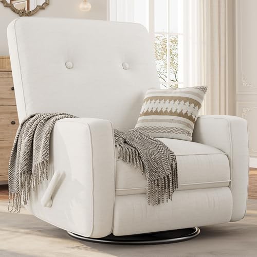 199641058225: Garvee Nursery Recliner Chair, 360° Swivel Rocking Glider Chair for Adults with Adjustable Backrest & Footrest, Cozy Linen Upholstered Armchair for Living Rooms, Bedrooms, Apartments, Beige: GV250729-BG333V-5x