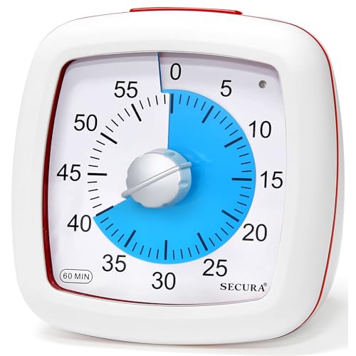 - Product Name: Secura 60-Minute Visual Timer, Silent Study Timer for Kids and Adults, Time Clocks, Time Management Countdown Timer for Teaching (Blue & White): TM034-WT-BL