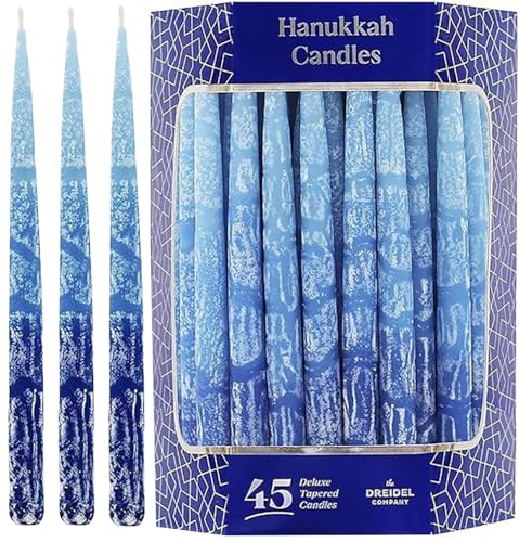 - Product Name: The Dreidel Company Hanukkah Candles Dripless Multi Blue Hued Frosted Deluxe Tapered Candles 1-Hour Burn Time Odorless 45 Candles for All Eight Nights of Hanukkah